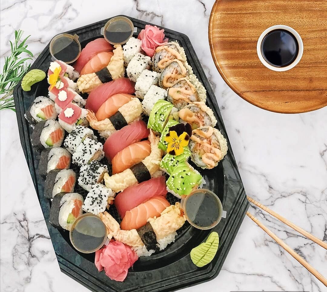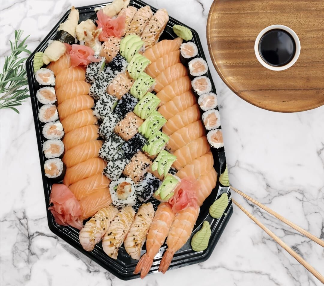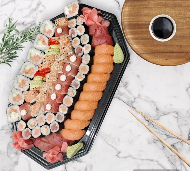 Sushi, orez prajit,teriaki de pui ,karage,snitel katzu ,salata asortata ....